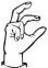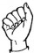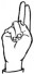 На ћирилици написано МОМИРА КЕЗИЋ састоји се из 11 слова [?]. Исписано ћириличном једноручном азбуком за глувонеме: